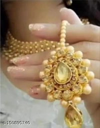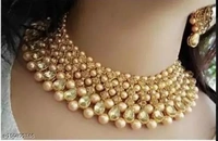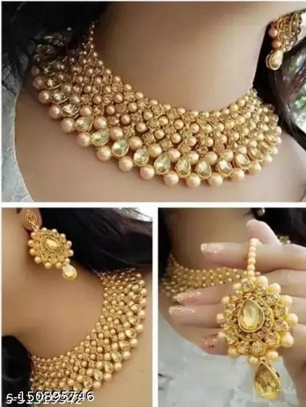 jewellery setTraditional Stylish Ethnic & Party -Stone & Pearl Beaded Choker Necklace set with Maang Tikka & Earrings (BJ 110 GOLD/Women Fancy Jewellery SetWear Multi