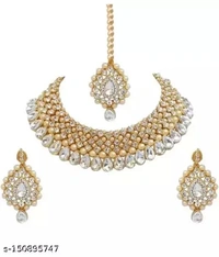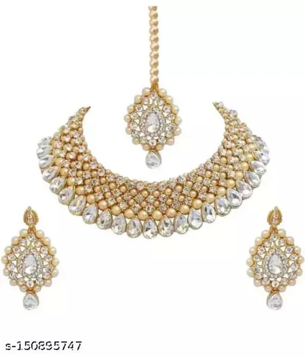 Necklace set for women /jewellery setTraditional Stylish Ethnic & Party -Stone & Pearl Beaded Choker Necklace set with Maang Tikka & Earrings (BJ 110 GOLD/Women Fancy Jewellery SetWear Multi