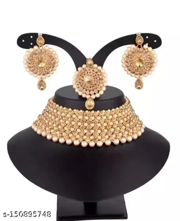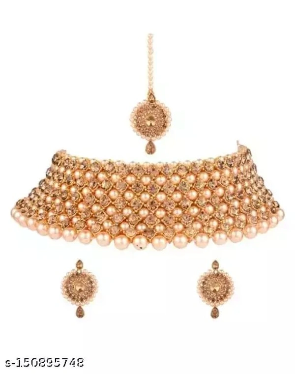 Necklace set for women /jewellery setTraditional Stylish Ethnic & Party -Stone & Pearl Beaded Choker Necklace set with Maang Tikka & Earrings (BJ 110 GOLD/Women Fancy Jewellery SetWear Multi