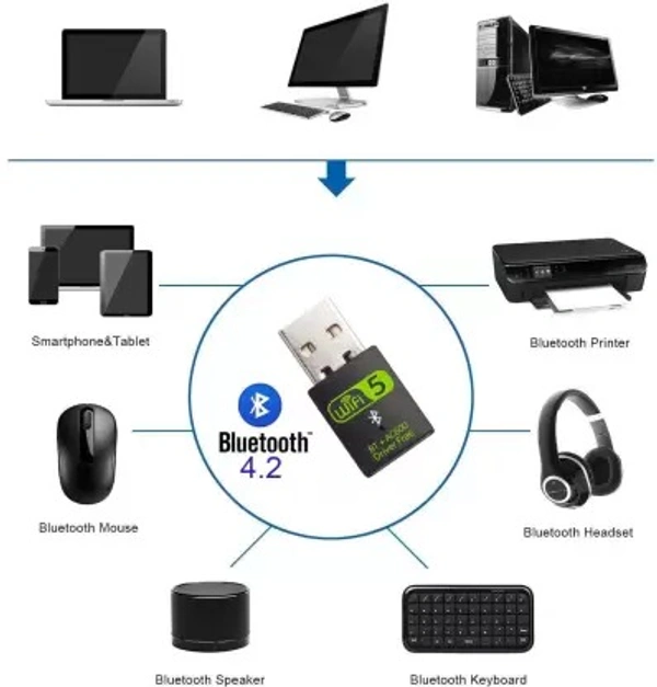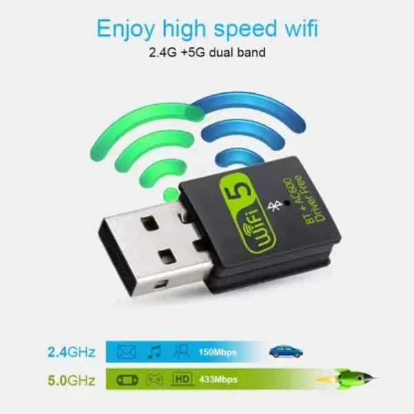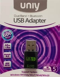 UNIY 2 in one 5G+2.4G wireless+Bluetooth USB dongle 600Mbps for Laptop/Desktop(wifi) USB Adapter (Black)