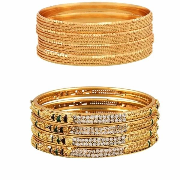 Zeneme Antique Look Jewellery Gold Plated Dual Tone and Designer Set of 8 Designer Temple Style Bangle Set For Women