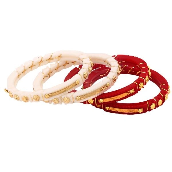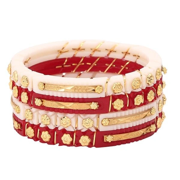 Bovzen- Gold Plated Acrylic Shakha Pola Bangle Set Pack of 4 ( Size 2-2)