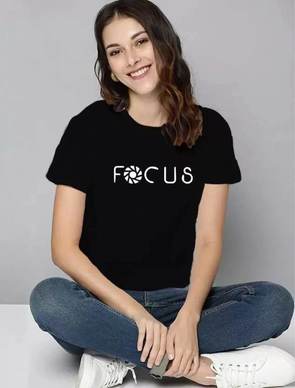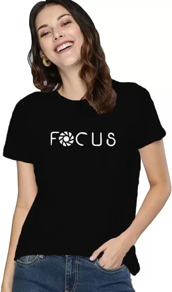 Focus Tshirt Women Typography Round Neck Cotton Blend