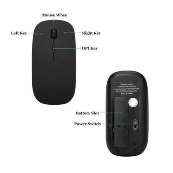 ADZOY Ultra Slim Wireless Mouse, 2.4G Portable Optical Silent Ultra-Thin Wireless Mouse with Nano USB Receiver Compatible with PC, Laptop, Notebook, Desktop(Black)