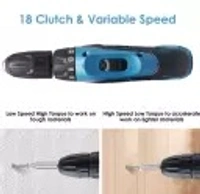 V 10mm 12V Reversible Variable Speed Cordless Screwdriver Double Battery with 30 pcs Tool Kit Cordless Drill (10 mm Chuck Size)
