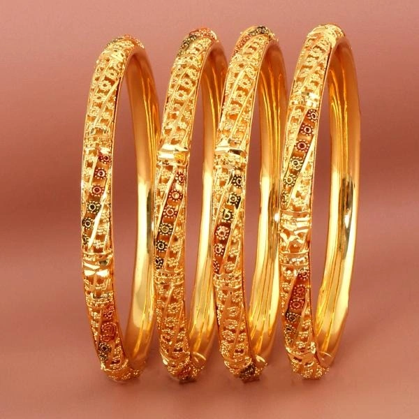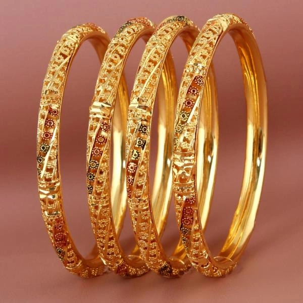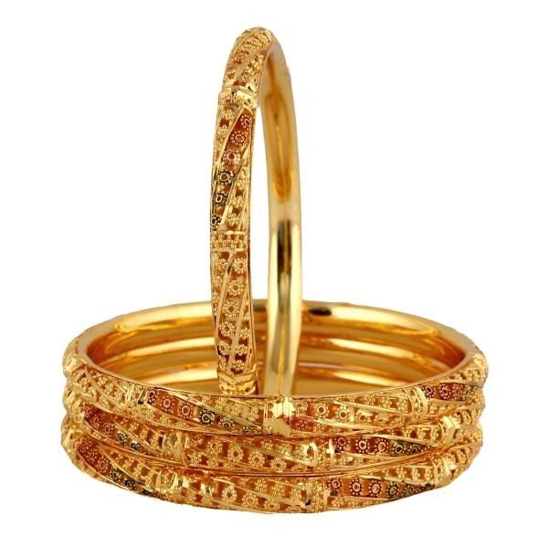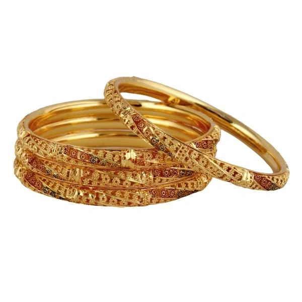 LUCKY JEWELLERY 18K Gold Plated Designer Golden color Traditional Ethinic Bangles set For Women (624-J1BG-1734-4-24)