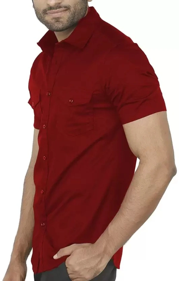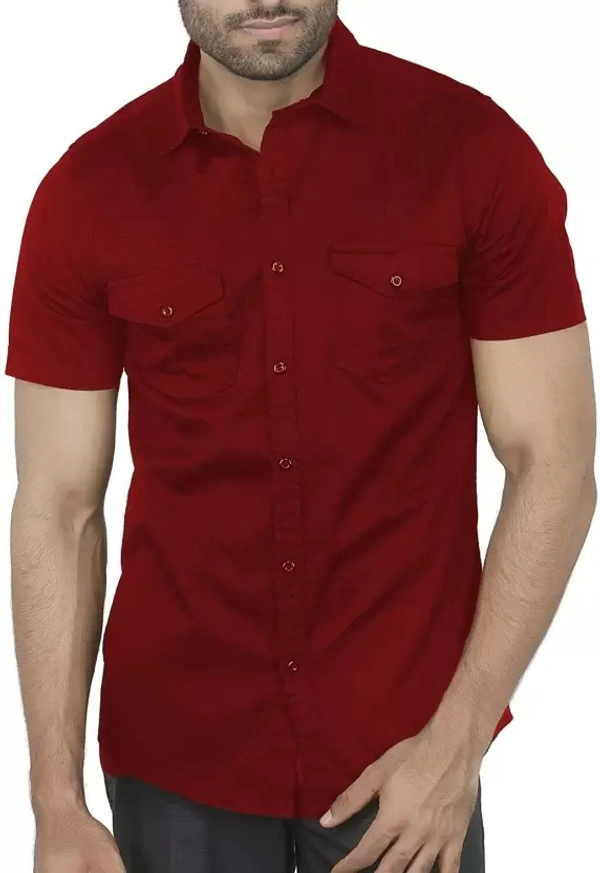 Men Slim Fit Solid Spread Collar Casual Shirt