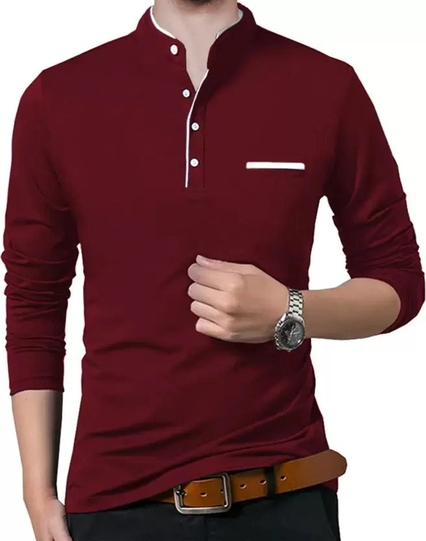 Men Solid Polo Neck Cotton Blend Maroon