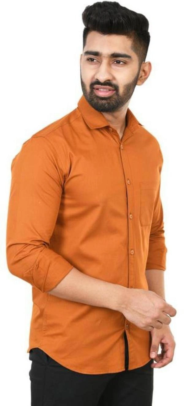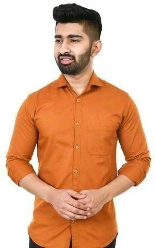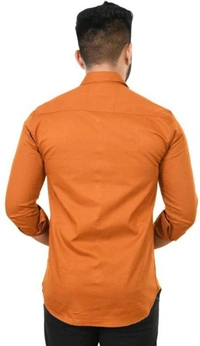 Bought First Men Orange Solid Pure Cotton Casual Shirt