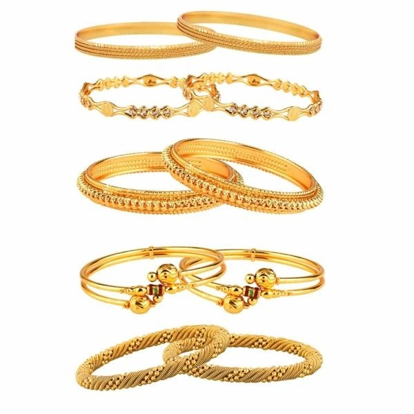 Zeneme Combo Of Designer Victoria Bangles, Pearls Bangles, Trendy Gold Plated and Coinage Bangles For Women - Pack Of 10 (2.6)