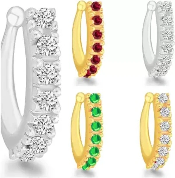 AMAAL Cubic Zirconia, Diamond Silver, Gold-plated Plated Copper, Brass, Crystal, Stone Nose Ring (Pack of 5)