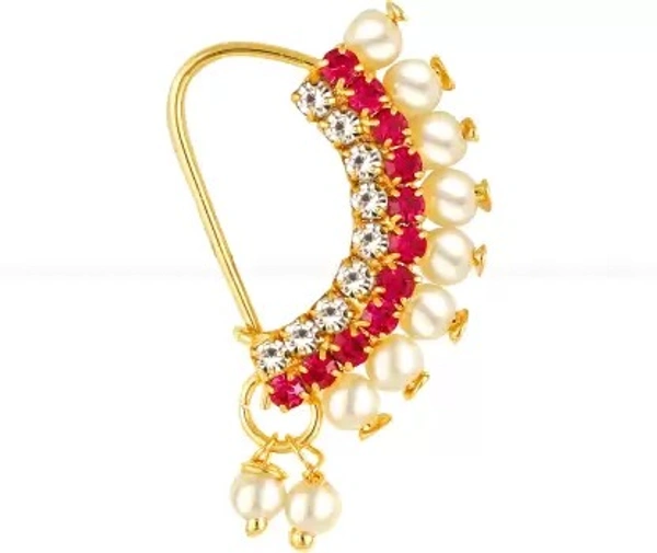 VIGHNAHARTA Pearl, Cubic Zirconia Gold-plated Plated Alloy Nose Ring