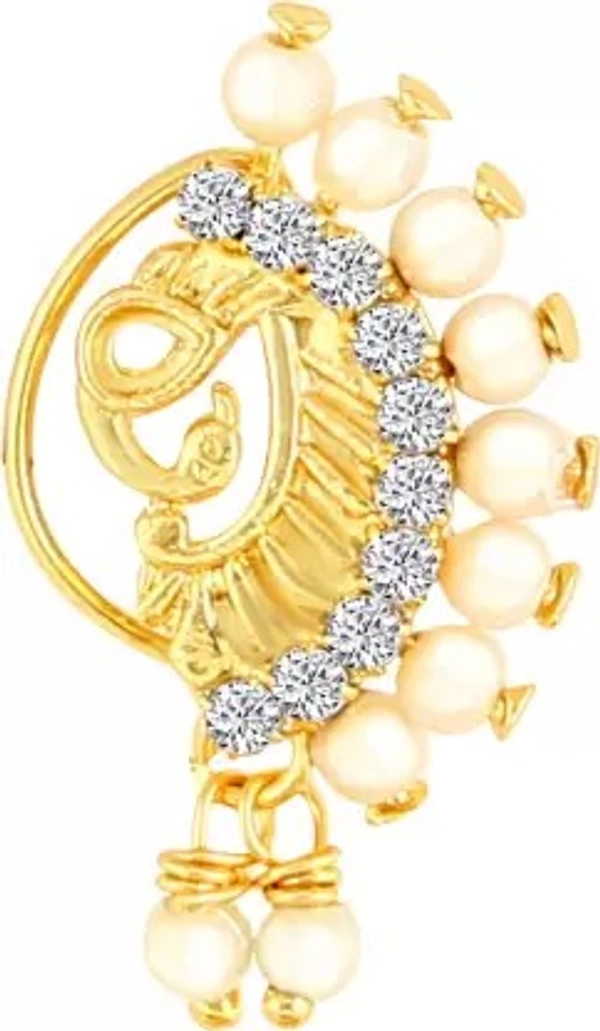 VIGHNAHARTA Pearl, Cubic Zirconia Gold-plated Plated Alloy Nose Ring