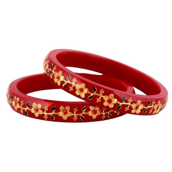 LUCKY JEWELLERY Designer pair of Sankha & bengali pola Reddish maroon color Traditional Ethinic Bangles set (248-J1BG-1707-R2-24)