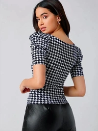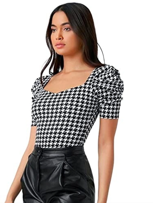 Dream Beauty Fashion Women's Casual Sweetheart Neck and Puff Sleeves Stylish Printed