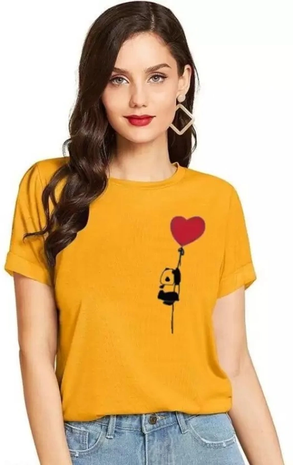 Women Printed Round Neck Pure Cotton Yellow T-Shirt