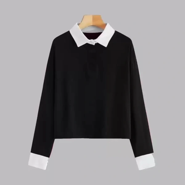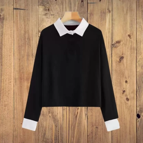 Women Solid Round Neck Cotton Blend Black T-Shirt