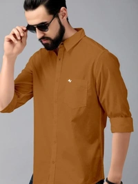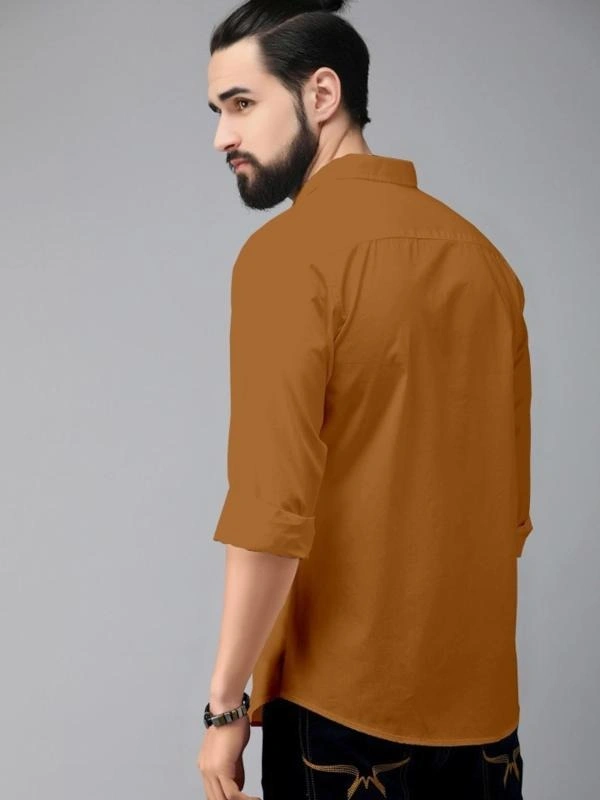 Bought First Men Brown Solid Pure Cotton Casual Shirt (L)