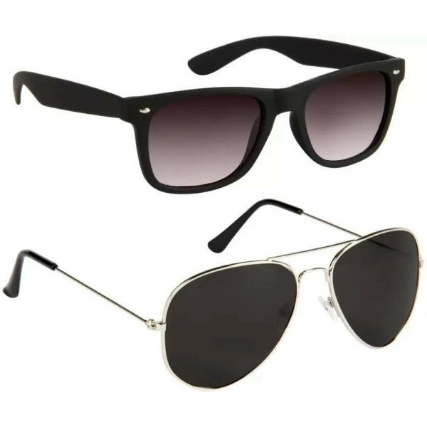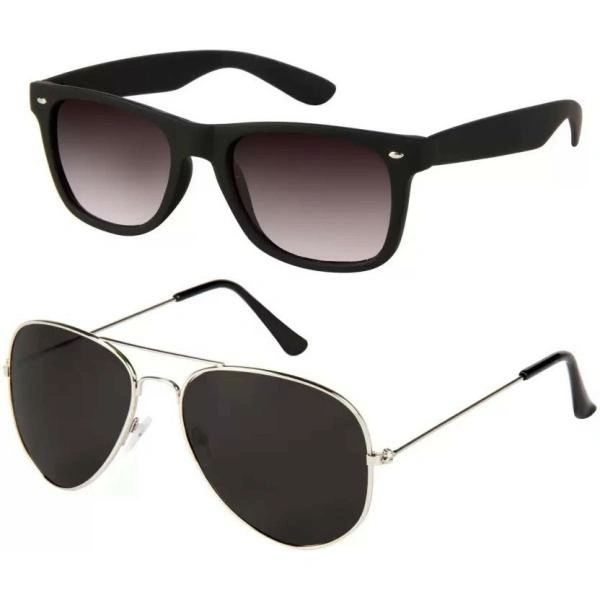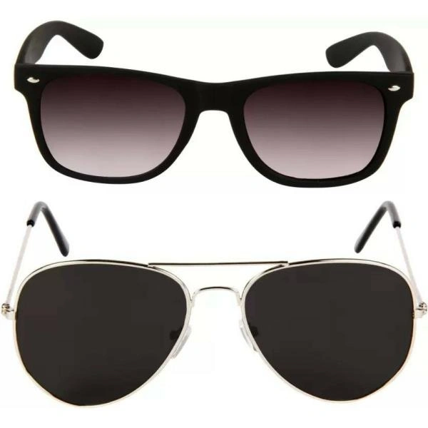 FUNK David Martin Aviator, Wayfarer Full Frame Black Sunglasses for Men and Women (Pack of 2) l Goggles l Shades l Pair of Glasses l Eyewear l Fashion l Latest Design