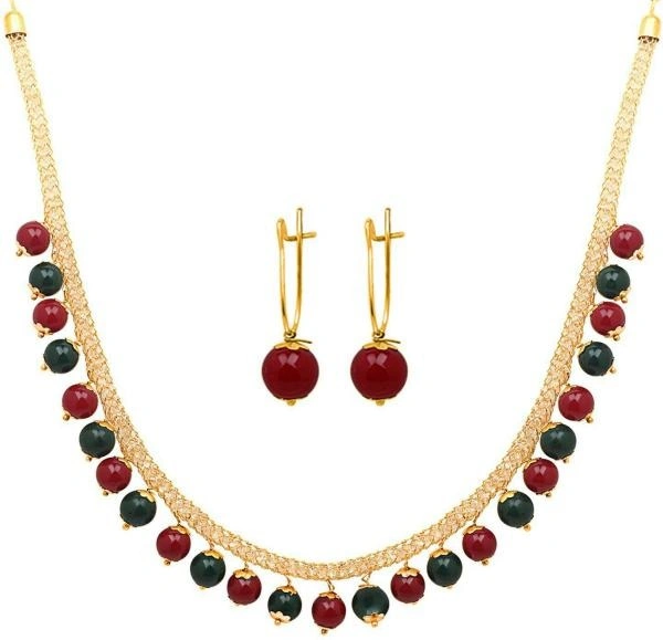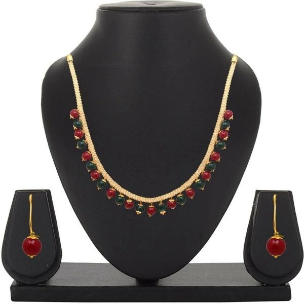 Mahi Women Gold Plated Alloy Jewellery Set (Green, Red)