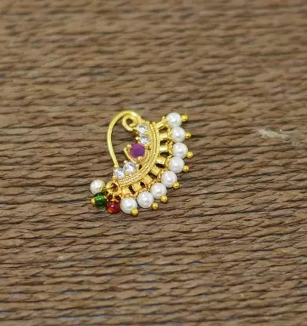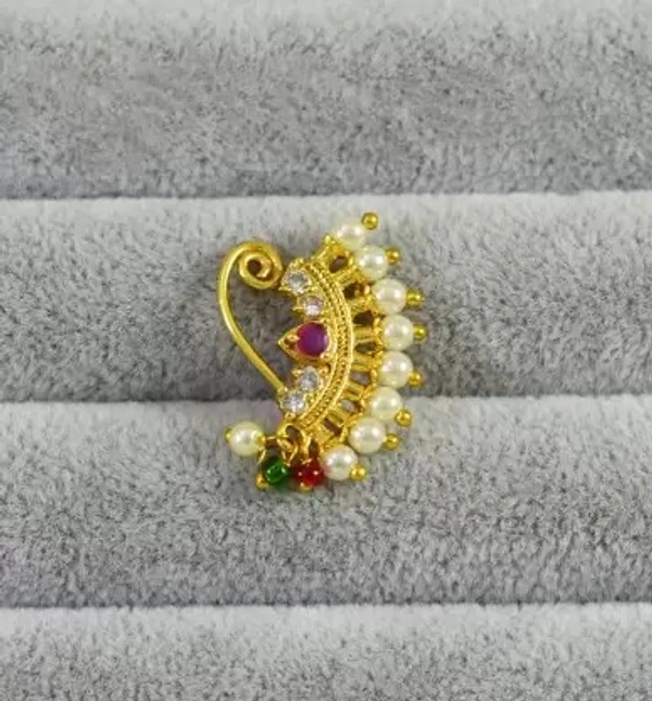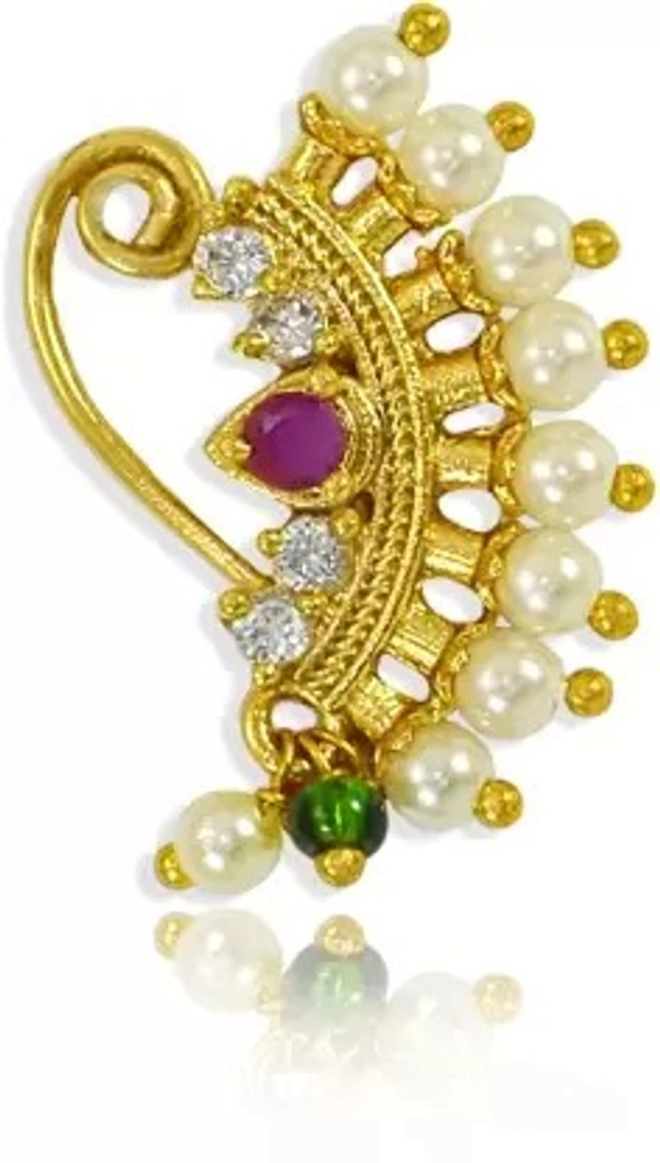 SHI Jewellery Cubic Zirconia, Pearl Gold-plated Plated Mother of Pearl Nose Ring