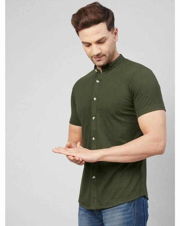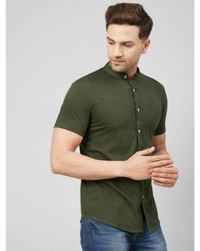 Gritstones Men Olive Green Half Sleeve Cotton Blend Summer Shirts