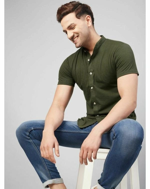 Gritstones Men Olive Green Half Sleeve Cotton Blend Summer Shirts