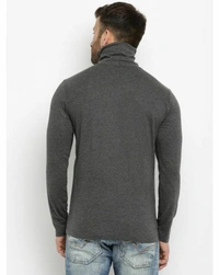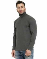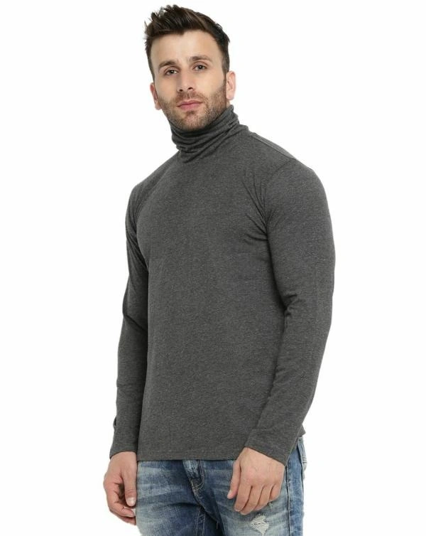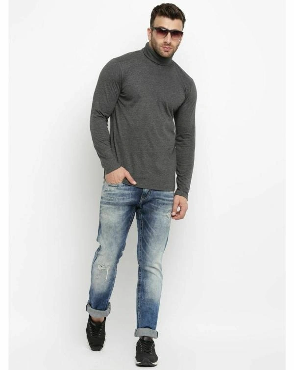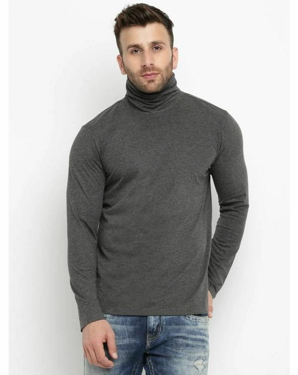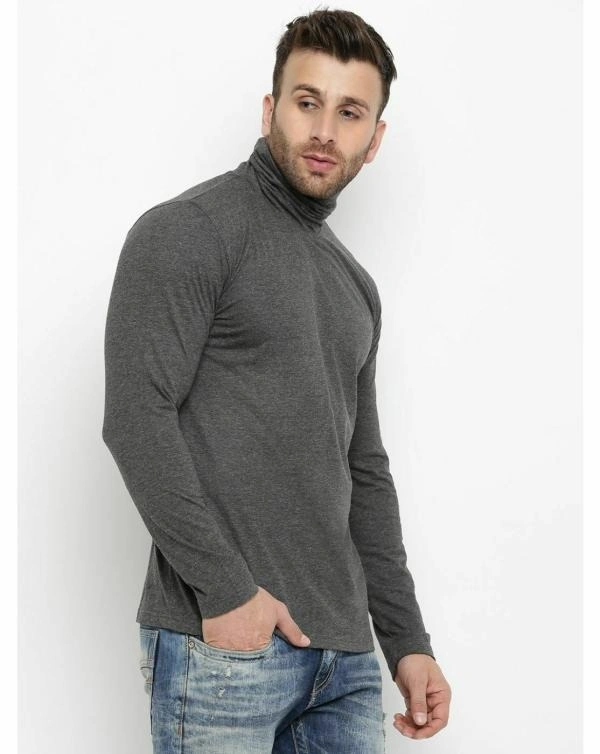 Gritstones Solid Men High Neck Grey T-Shirt