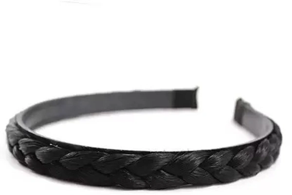APSAMBR Braided Faux Hair Plaits Soft Extensions Stretchy Headband Hairband | Hair Plaited Plait Elastic Hairband for Girls & Women Hair Band (Black)