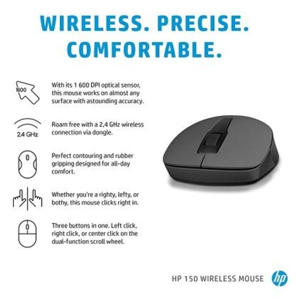 HP 150 Optical Wireless Mouse (1600 DPI Resolution, 2S9L1AA,
