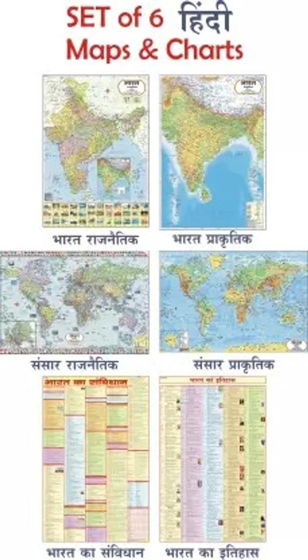 India and World ( Both Political & Physical ) in HINDI and Bharat ka Samvidhan aur Itihas Paper Print (40 inch X 28 inch, Folded)