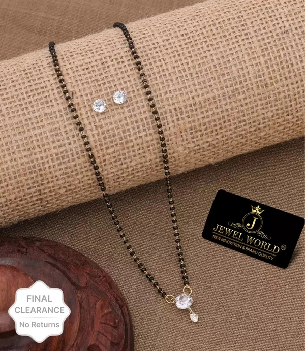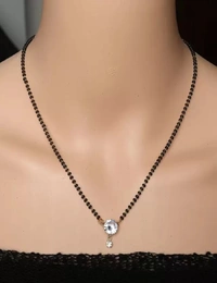 18 inch Short AMERICAN DIAMOND With DIAMOND EARRINGS Metal Mangalsutra