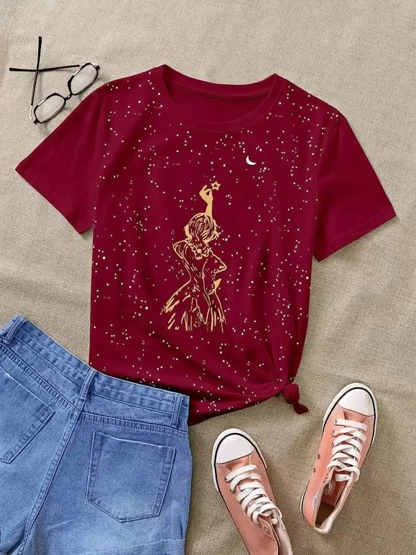 Women Graphic Print Round Neck Pure Cotton Maroon T-Shirt