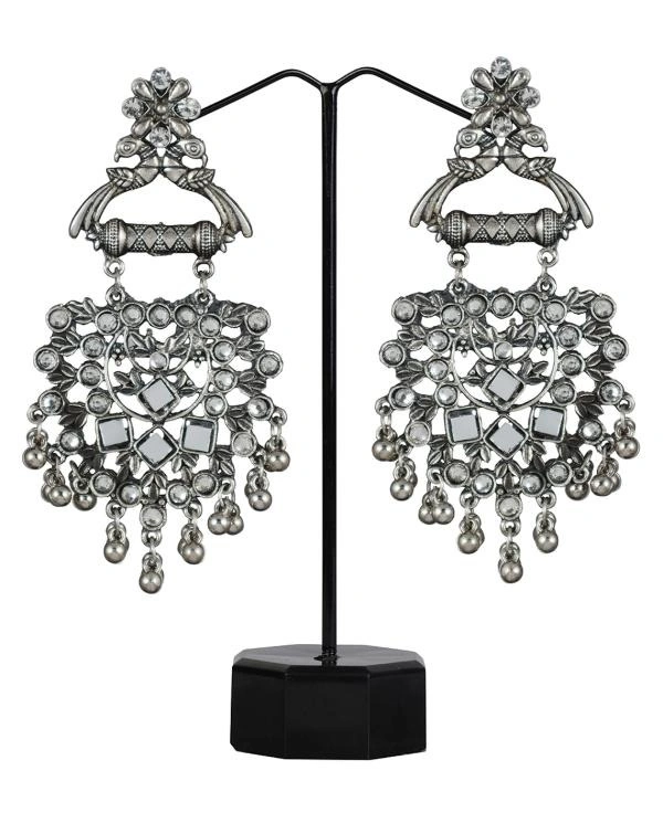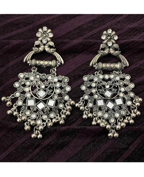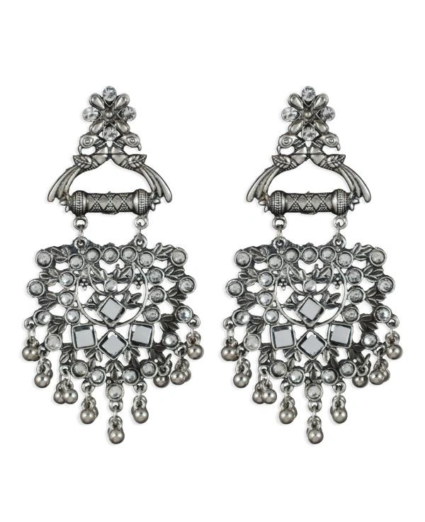 Silver-Toned Mirror Detailing Contemporary Earrings for women girls
