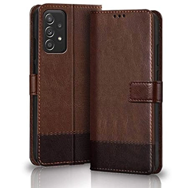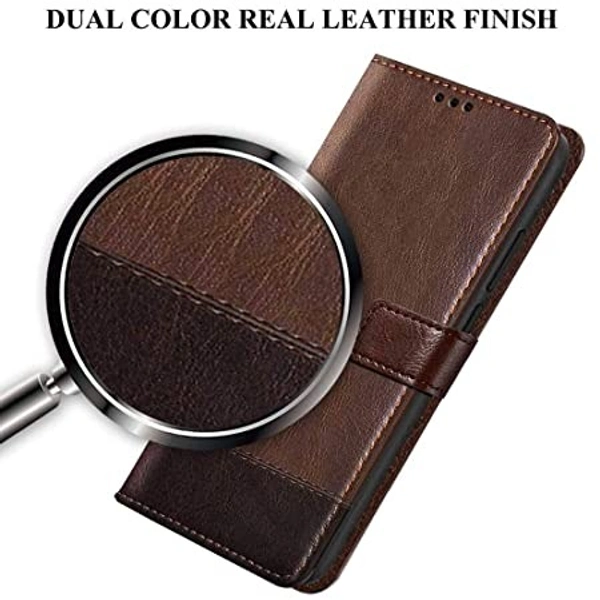 TheGiftKart Flip Back Cover Case for Samsung Galaxy A13 4G | Dual-Color Leather Finish | Inbuilt Stand & Pockets | Wallet Style Flip Back Case Cover for Samsung Galaxy A13 4G (Brown & Coffee)
