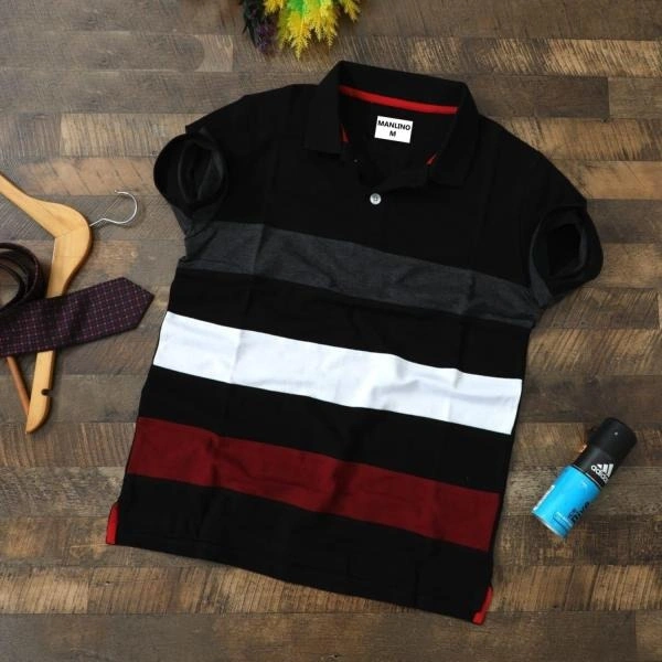 MANLINO MENS TRENDY BLACK POLO T SHIRT-M