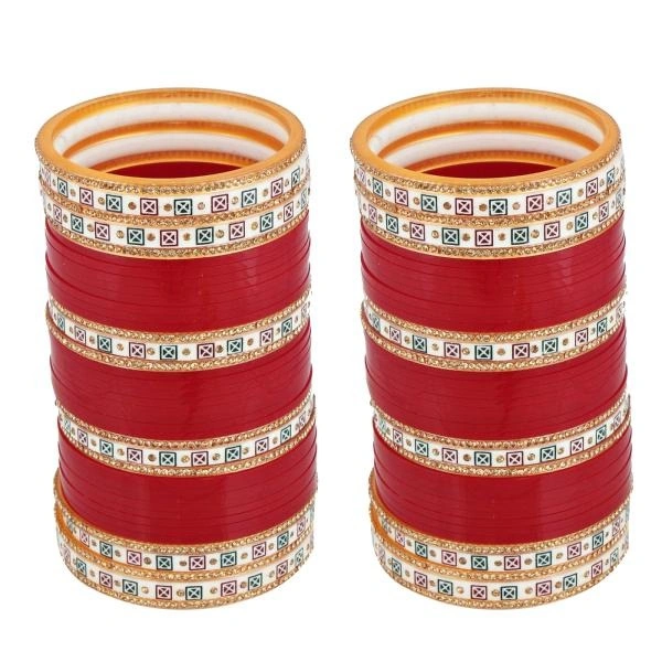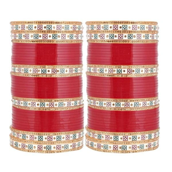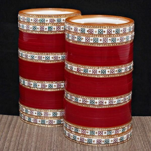 LUCKY JEWELLERY Bridal Wedding punjabi chuda Designer chura CZ Stone with Traditional Polka Dot Maroon Color choora (752-M1C1-LJ102-M-210)