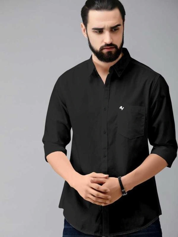 Bought First Men Black Solid Pure Cotton Casual Shirt (L)