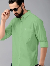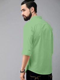 Bought First Men Light Green Solid Pure Cotton Casual Shirt