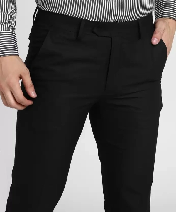 Men Slim Fit Black Pure Silk Trousers
