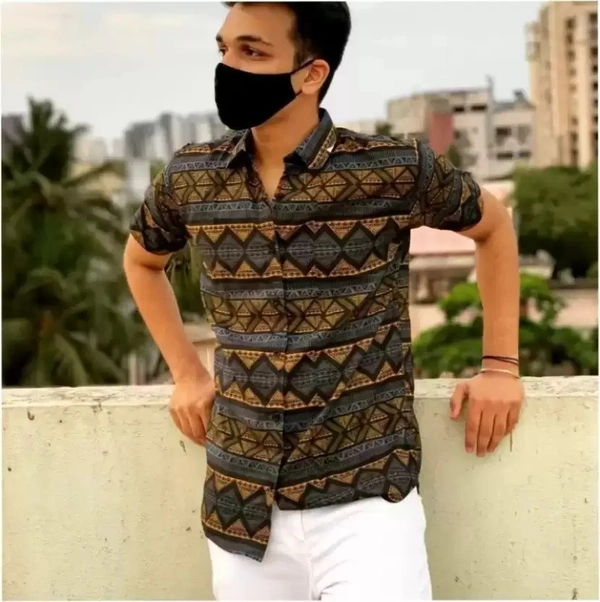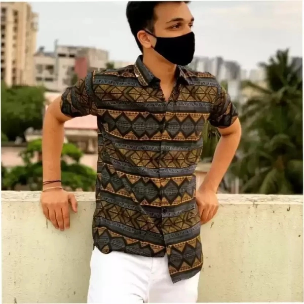Men Regular Fit Printed Spread Collar Casual Shirt