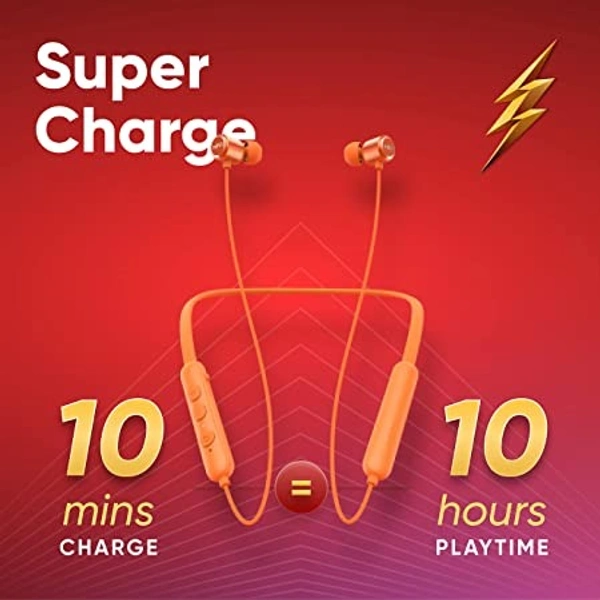 Mivi Collar Flash Bluetooth Wireless in Ear Earphones,24 Hours Battery Life, Booming Bass, IPX4 Sweat Proof, Passive Noise Cancellation, Bluetooth 5.0 with mic (Orange)