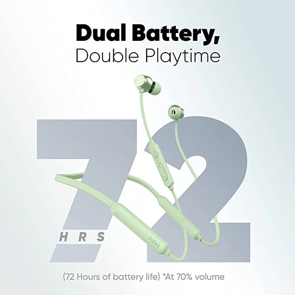 Mivi Collar Flash Pro Bluetooth Earphones with mic, 72 Hours Playback Time, Dual Battery, Made in India. Neckband with Powerful Bass, Rich Sound, Fast Charging, Premium Finish(Green)