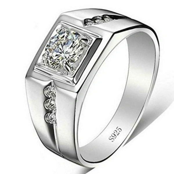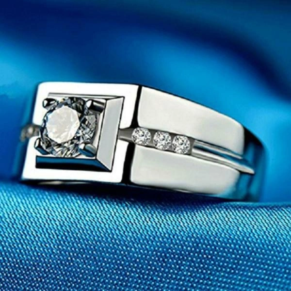 MYKI Exclusive Limited Edition Sterling Silver Swarovski Solitaire Adjustable Rings For Men & Boys