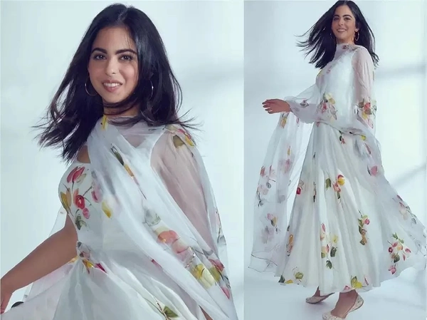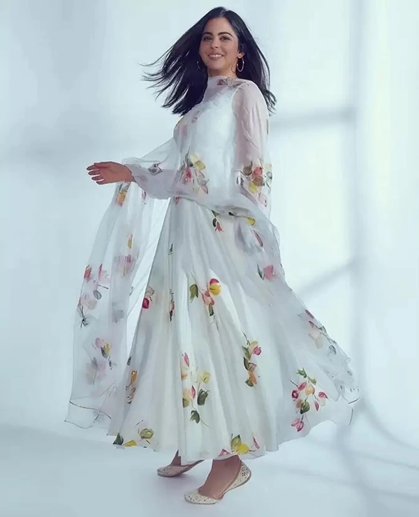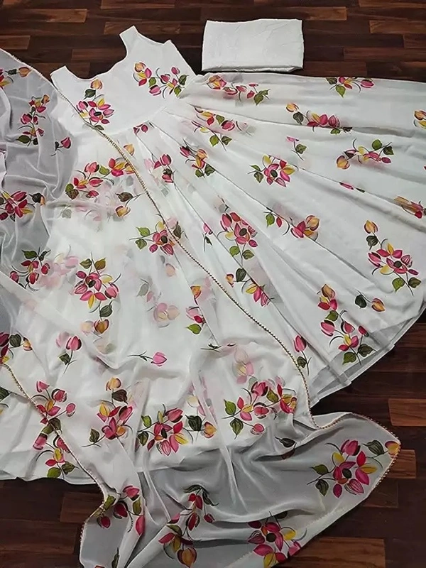 Women Floral Print Georgette Anarkali Kurta With Attached Dupatta