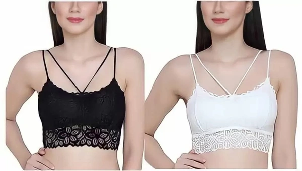 Pack of 2 Women Bralette Lightly Padded Bra (Black, White)
