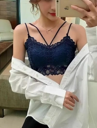 Pack of 2 Women Bralette Lightly Padded Bra (Dark Blue, Black)