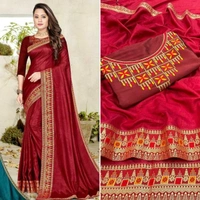 PARI DESIGNER Women Maroon Embroidered Silk Blend Single Saree