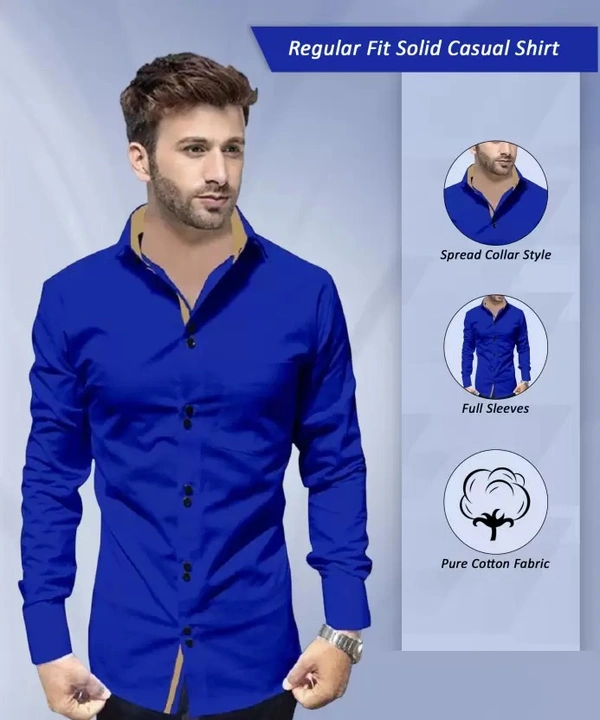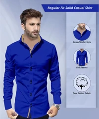 Men Regular Fit Solid Spread Collar Casual