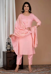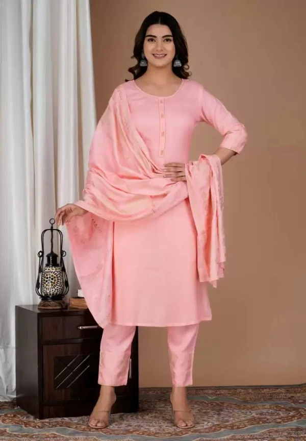 Women Kurta, Pant And Dupatta Set Cotton Rayon